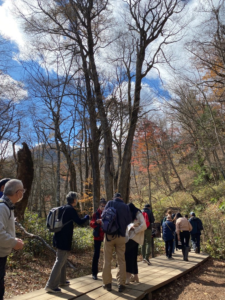 会員20人(日本人14人、外国人6人)が参加し、紅葉シーズンの奥日光の湯滝と戦場ヶ原周辺をハイキングしました。昼食の時に初めて会う会員と話をしたり、バスの中で参加者が自分の国の言葉や文化を紹介するなど、交流を深めることができました。