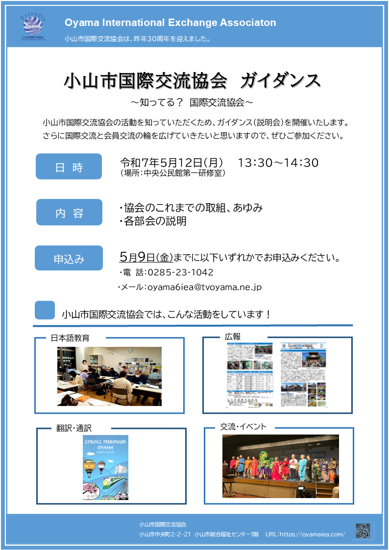 小山市国際交流協会の活動を広く知っていただくためのガイダンスです。