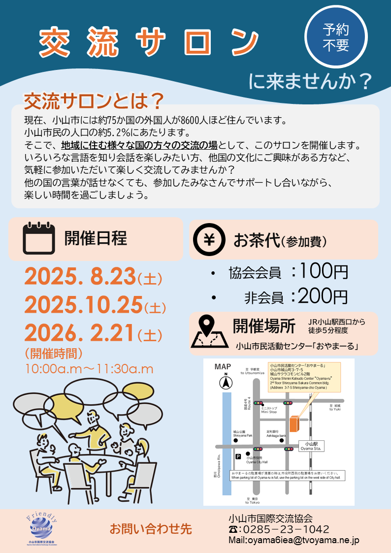 そこで、地域に住む様々な国の方々の交流の場として、このサロンを開催します。