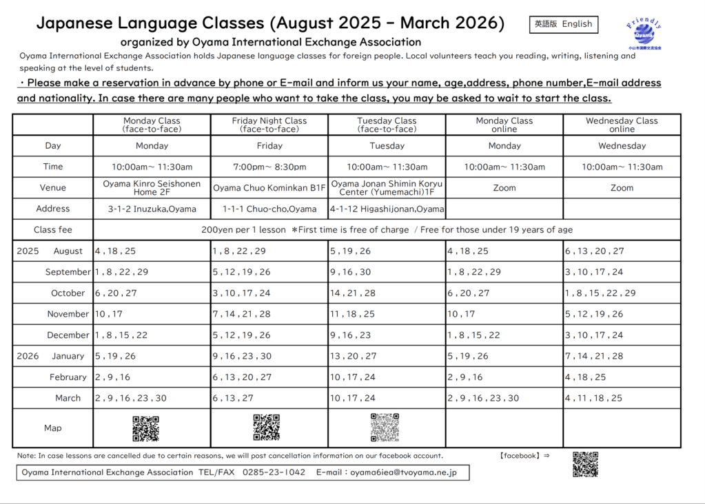 (English)日本語教室カレンダー